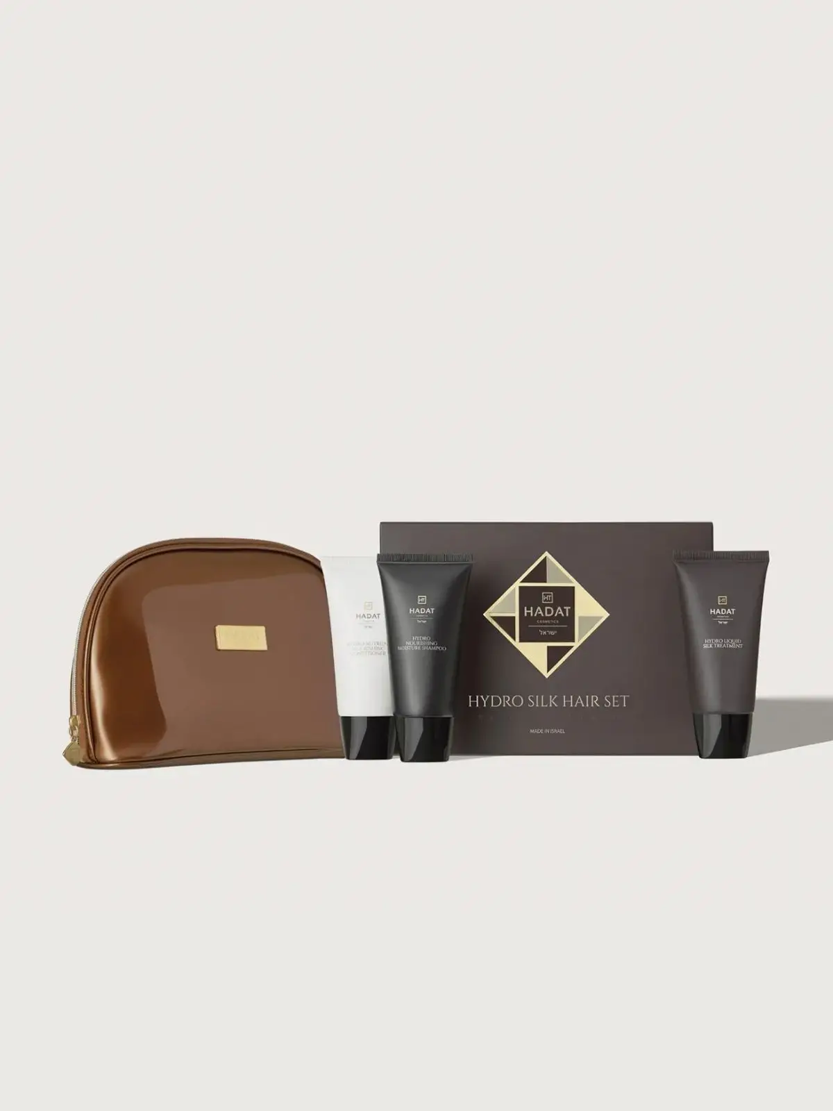 HADAT Hydro Silk Hair Set, kuru ve yıpranmış saçları derinlemesine besleyip onararak doğal güç ve canlılığını geri kazandırır. Set, Hydro Nourishing Moisture Shampoo, Hydro Nutrient Nourishing Conditioner ve Hydro Liquid Silk Treatment ürünlerini içerir. Sea Oil Silk teknolojisi sayesinde ürünler saçın moleküler yapısına nüfuz ederek yoğun bakım sağlar.