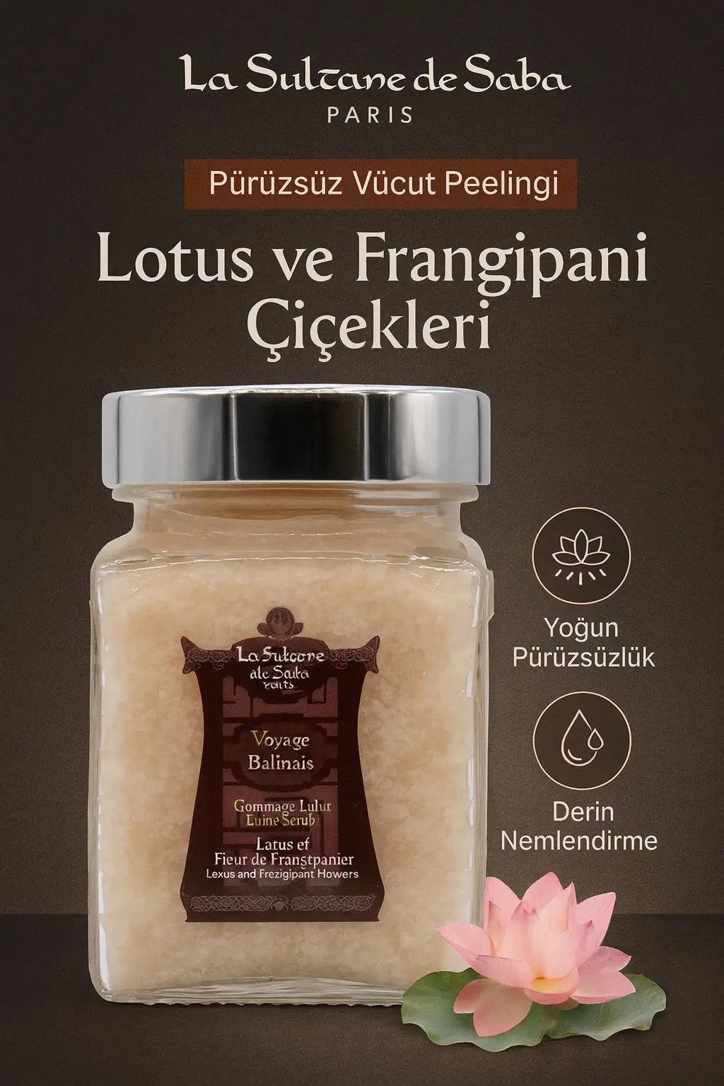 Lotus ve Frangipani çiçeklerinin aroması, vücudu nazikçe sarar ve cilde ferahlatıcı bir his bırakır.