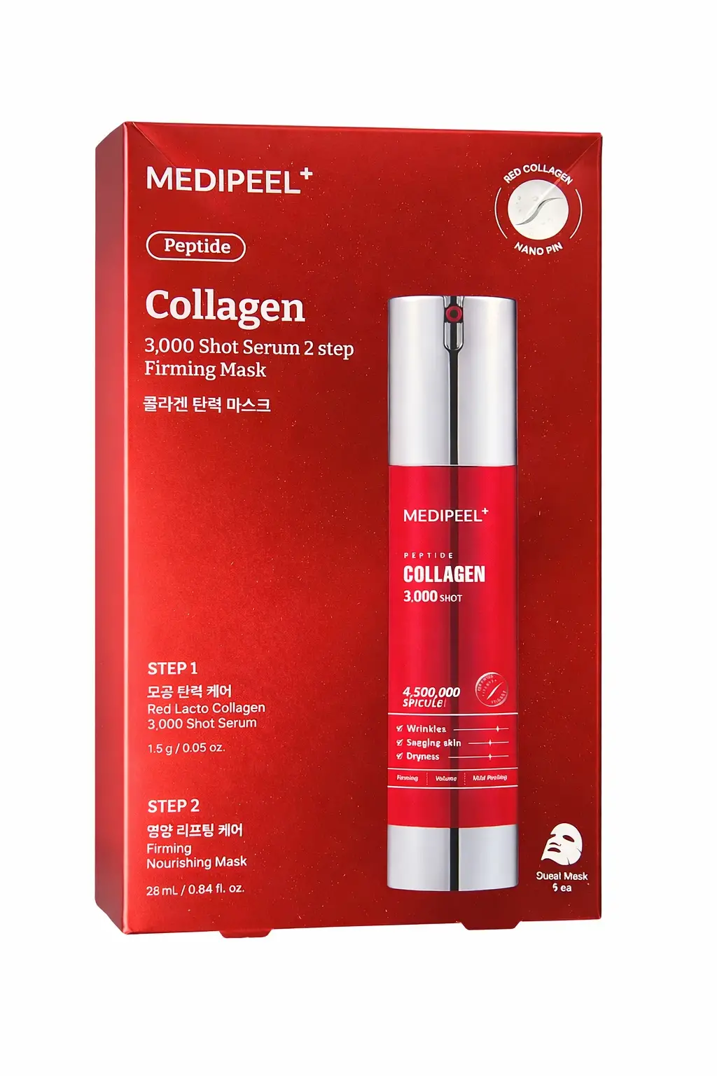 Medi-Peel Peptide Collagen 3000 Shot Maske Seti, iki adımlı profesyonel bakım sunar.
