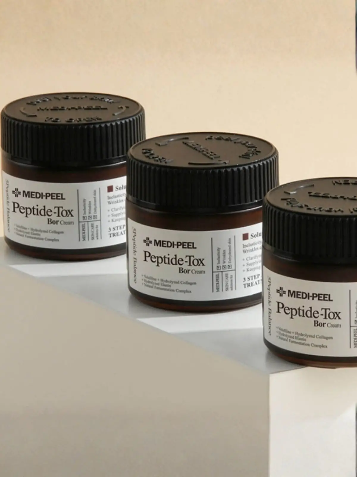 Medi-Peel Peptide-Tox Bor Cream, 5 peptid kompleksi, Volüfilin, seramidler ve kolajen ile formüle edilmiş yaşlanma karşıtı bir lifting kremidir. Cildi sıkılaştırır, kırışıklıkları azaltır ve yüz ovalini toparlar. İnce çizgilerin görünümünü azaltır.