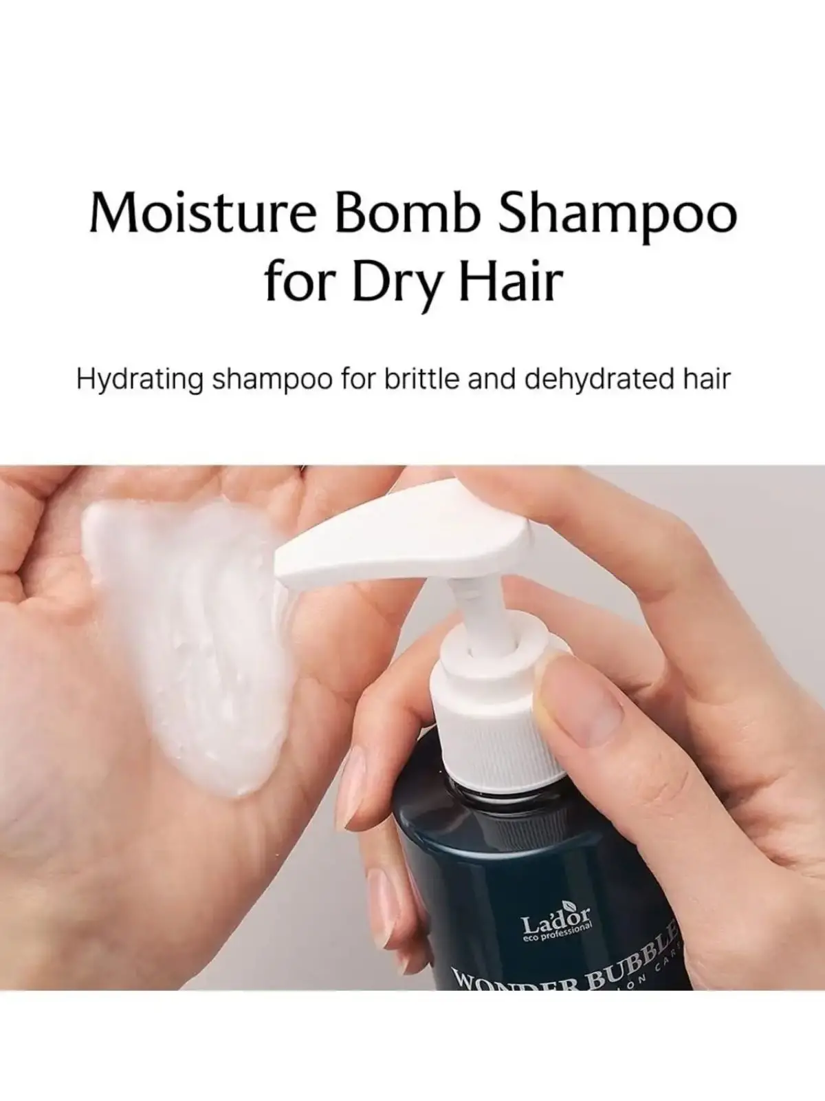 Lador Wonder Bubble Moisturizing Hair Shampoo — профессиональный увлажняющий шампунь, специально разработанный для сухих и повреждённых волос. Формула с гиалуроновой кислотой и мочевиной питает волосы от корней до кончиков, восстанавливает баланс влаги и придаёт естественный блеск.