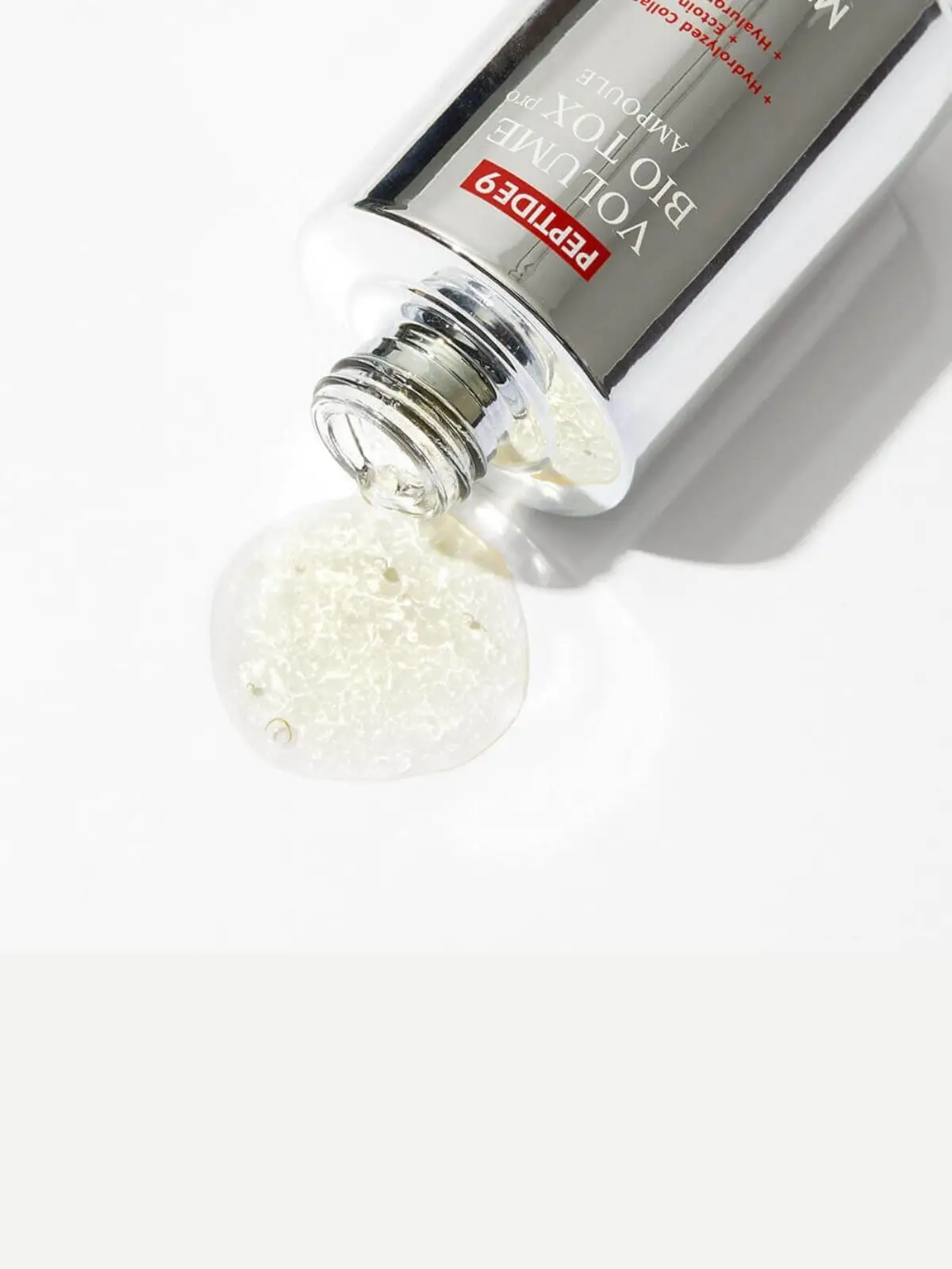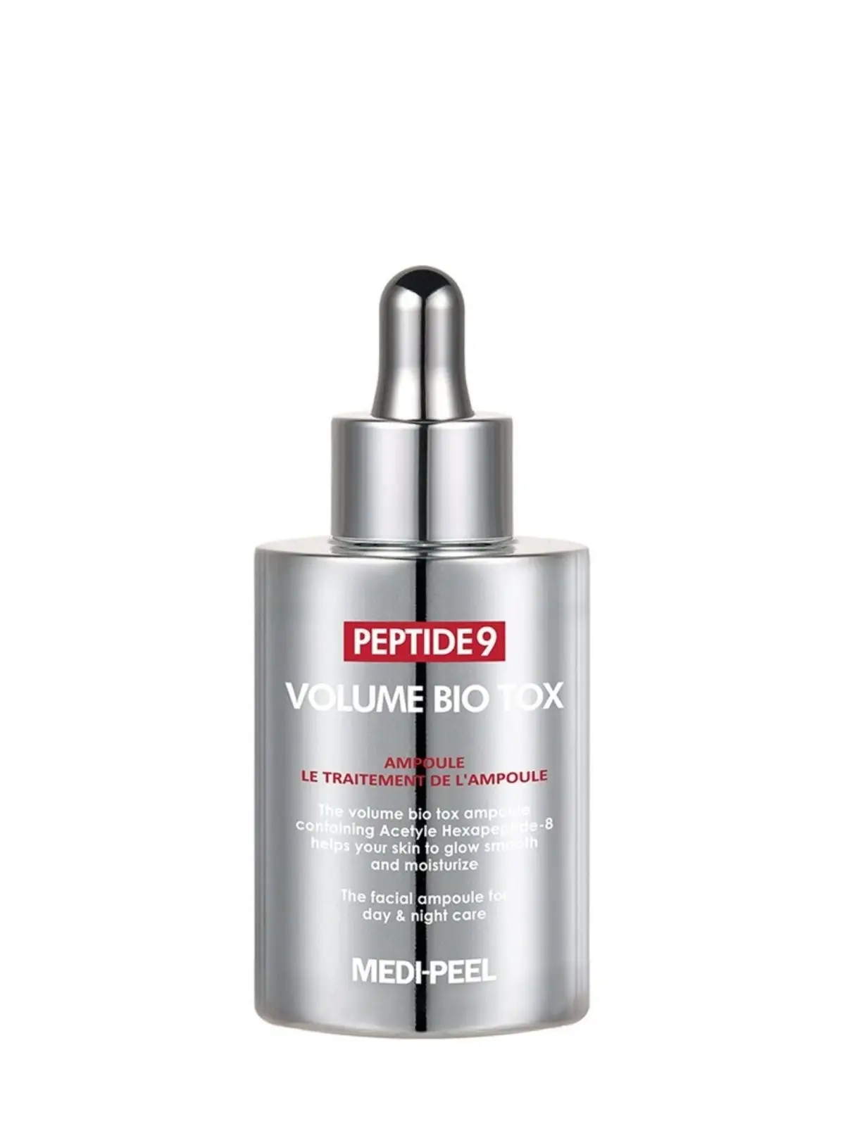 Medi-Peel Peptide 9 Volume Bio Tox Ampoule Pro с комплексом 9 пептидов, Volufiline™, астаксантином, коллагеном, эктоином и ниацинамидом обеспечивает коже объём, упругость и молодой сияющий вид.